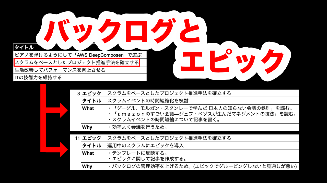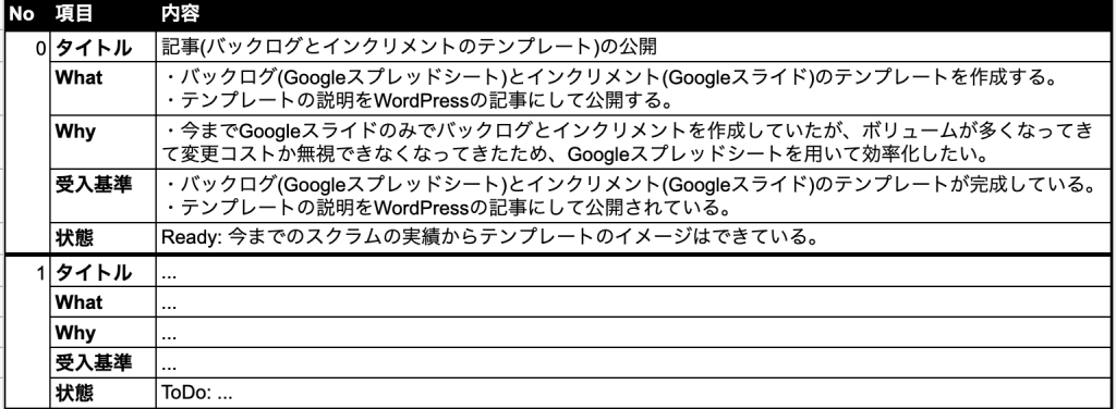 今回の用途(経営や組織運営)ではWhoは基本的に「組織」になるので、バックログにはWhatとWhyのみ記載することにしました。