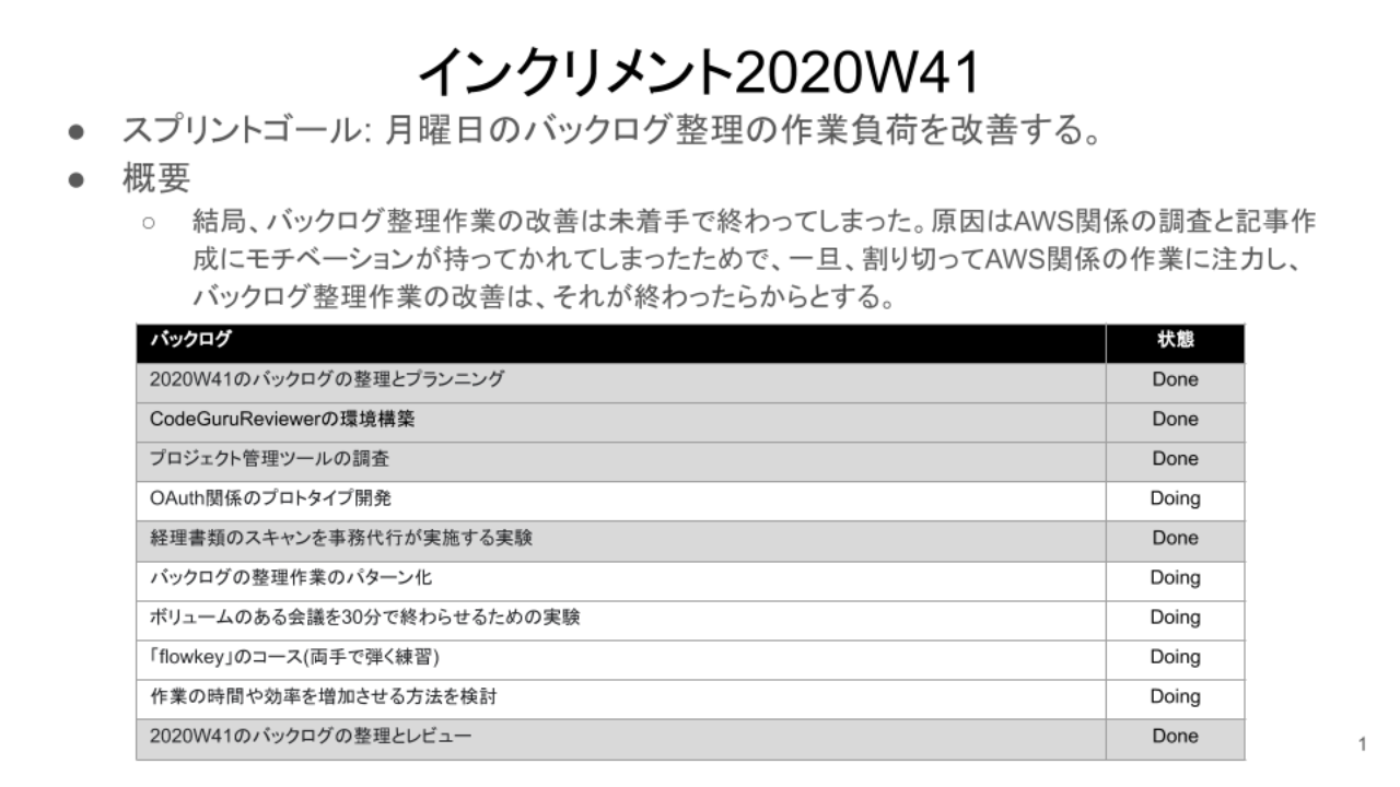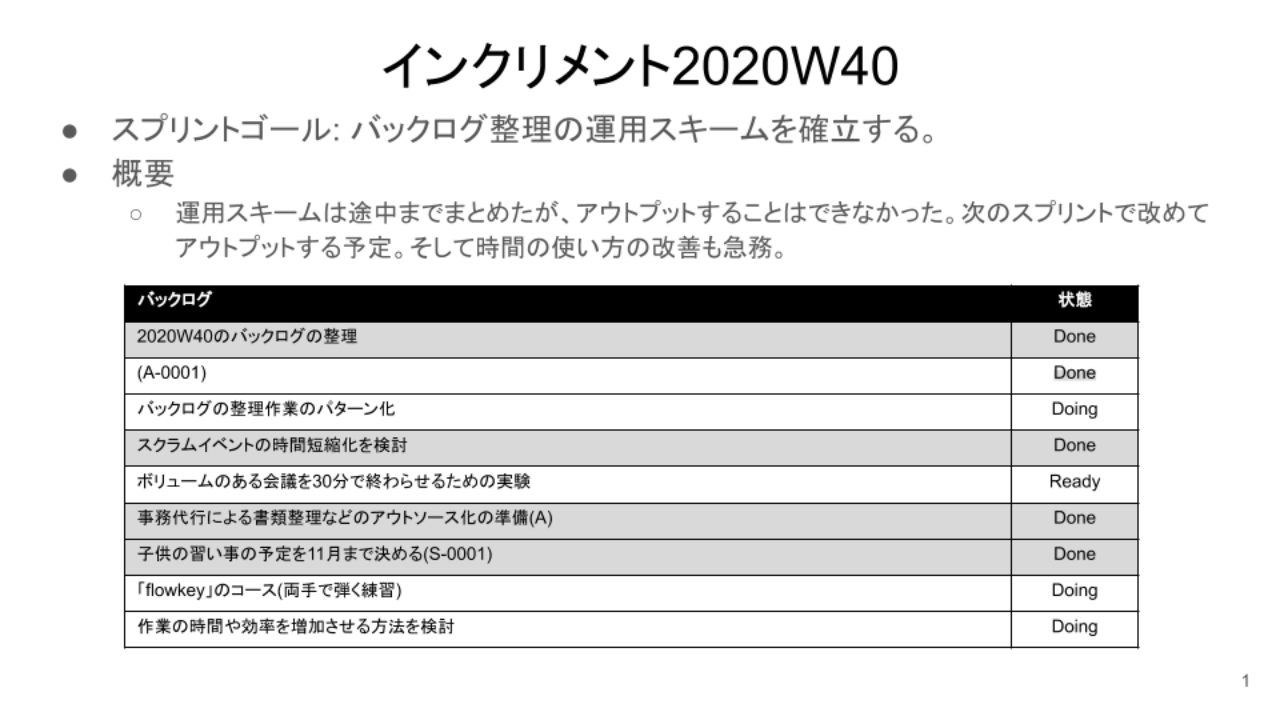 - 成果物: バックログの成果のまとめ(複数ページも可)